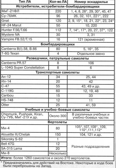 За март-апрель 1971 г. «Сейбры» из 14-й эскадрильи, а также прикомандированные к ней разведчики RT-33 и вертолеты Aluette III совершили около 170 боевых вылетов. Кроме того, были вооружены и брошены в бой аэроклубовские «поршневики», такие как Pilatus РС-3. Существенный объем работы выполнила BTA. Пожалуй, наиболее заметным стало участие 3 и 8 апреля двух «Геркулесов» в операциях по освобождению от сил «Мукти Бахини» аэродромов Лал-Мунирхат и Силхет, ВПП которых повстанцы забросали бревнами, чтобы не позволить самолетам приземлиться. Однако в обоих случаях оставшихся свободных участков оказалось достаточно, чтобы летчики одного С-130 смогли посадить свою машину, после чего высадившиеся десантники под огнем разбирали завалы, и второй «Геркулес» садился уже на расчищенную полосу.