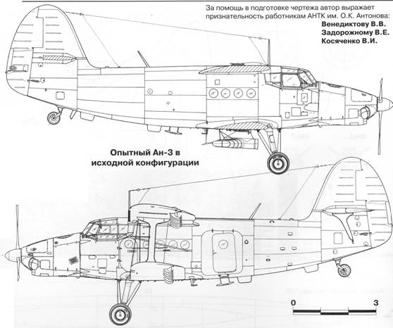 Начать практические работы по омоложению «Аннушки» долго не позволяло отсутствие подходящего «сердца». Свет в конце тоннеля появился, когда руководимое В.А. Глушенковым Омское моторостроительное КБ (ОМКБ) приступило к созданию на базе вертолетного ГТД-3 турбовинтового двигателя ГТД-10 (ТВД-10) мощностью 960 э.л.с. Однако этих «силенок» новому варианту Ан-2 явно не хватало, и в июне 1967 г. мотористы предложили модификацию ТВД-10А, которая могла бы развивать 1250 э.л.с. По высказыванию Антонова, «к глубокой модернизации мы приступили в тот же час…». Новая машина получила обозначение Ан-3. Ведущим конструктором по ней назначили В.Е. Задорожного, который продолжает работать в этой должности и сегодня.