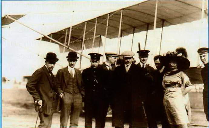 Группа участников Первой авиационной недели. Первый слева А.С. Кудашев, рядом с ним предприниматель В.А. Лебедев, пятый слева М.Н. Ефимов. Санкт-Петербург, весна 1910 г.