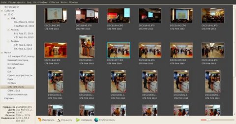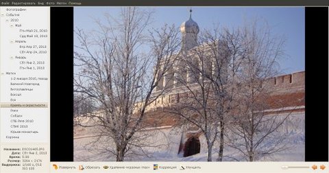 Первое отличие Shotwell от F-Spot, которое сразу бросается в глаза - программа запускается мгновенно. Беглая оценка показывает меньшие возможности редактирования чем у F-Spot, но с задачами каталогизации Shotwell справляется отлично: фотографии в коллекции рассортированы по событиям (датам), кроме того - им можно присваивать метки.