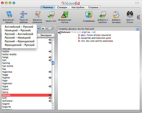 Из сильно представительного списка словарных приложений под Mac OS X для себя выбрал два. Забавно, что это словари из моего же джентльменского набора под Форточками (старею?) - парагоновский SlovoED и только-только вышедший аббийный Lingvo.