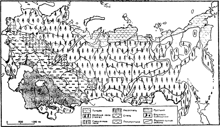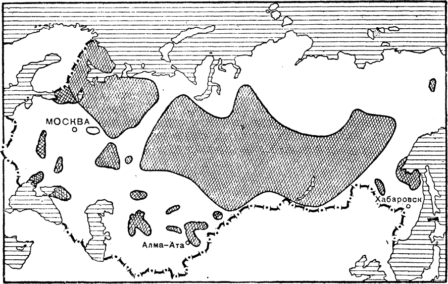 К востоку от Урала раскинулась Сибирь. На крайнем юге — плодородные степи, которые сейчас быстро распахиваются. На Крайнем Севере — тундры арктического побережья. А на остальном пространстве — необозримый хвойный лес: до Енисея болотистый урман с елями, пихтами и кедрами, а за Енисеем на возвышенностях — лиственницы, разреженные серыми, как бы прозрачными хлыстами сухостоя; жужжание пилы, выстрел охотника, скрежетание драги гаснут в бесконечном, едва уловимом шуме тайги.