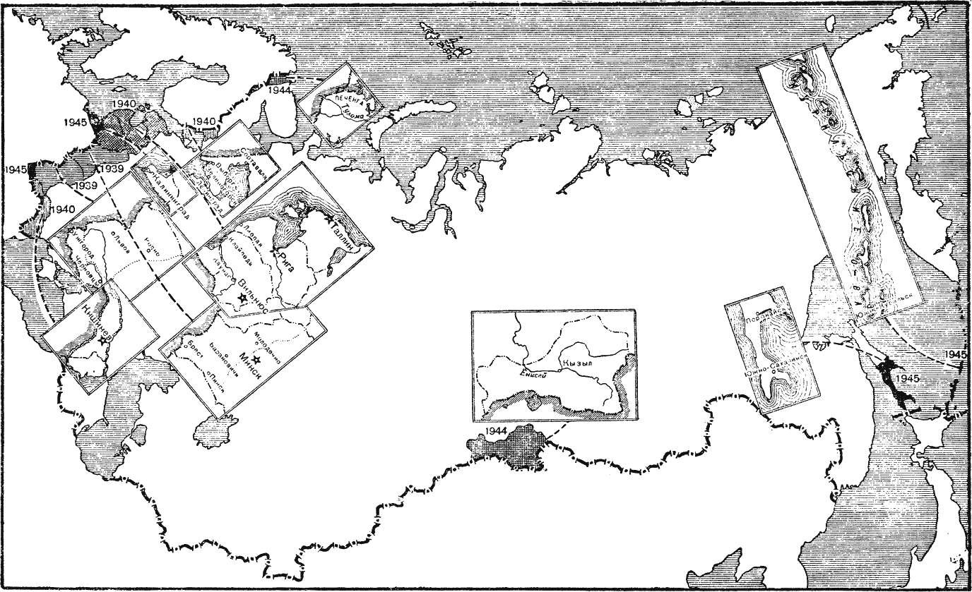 Как след истории все новые и новые штрихи ложатся на карту, карта меняется — и сама эта изменчивость карты утверждает неизменность и незыблемость истины: могуч народ, преображающий страну ради своего собственного счастья.