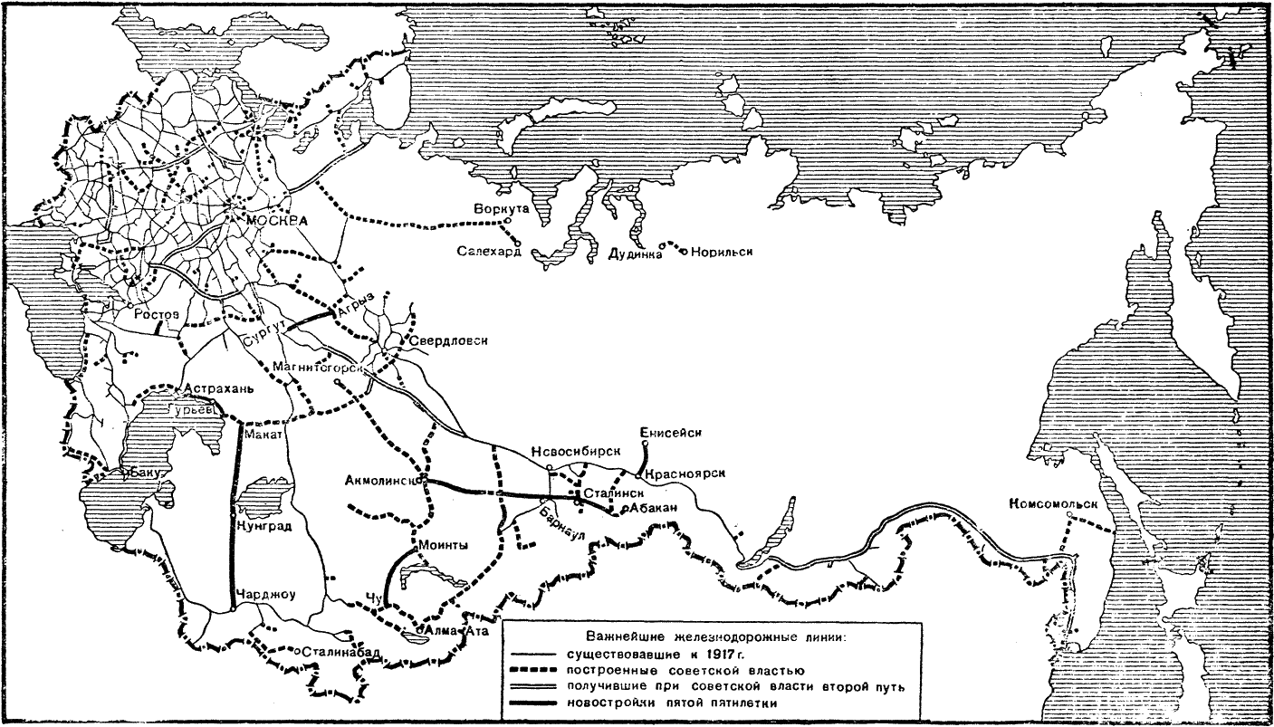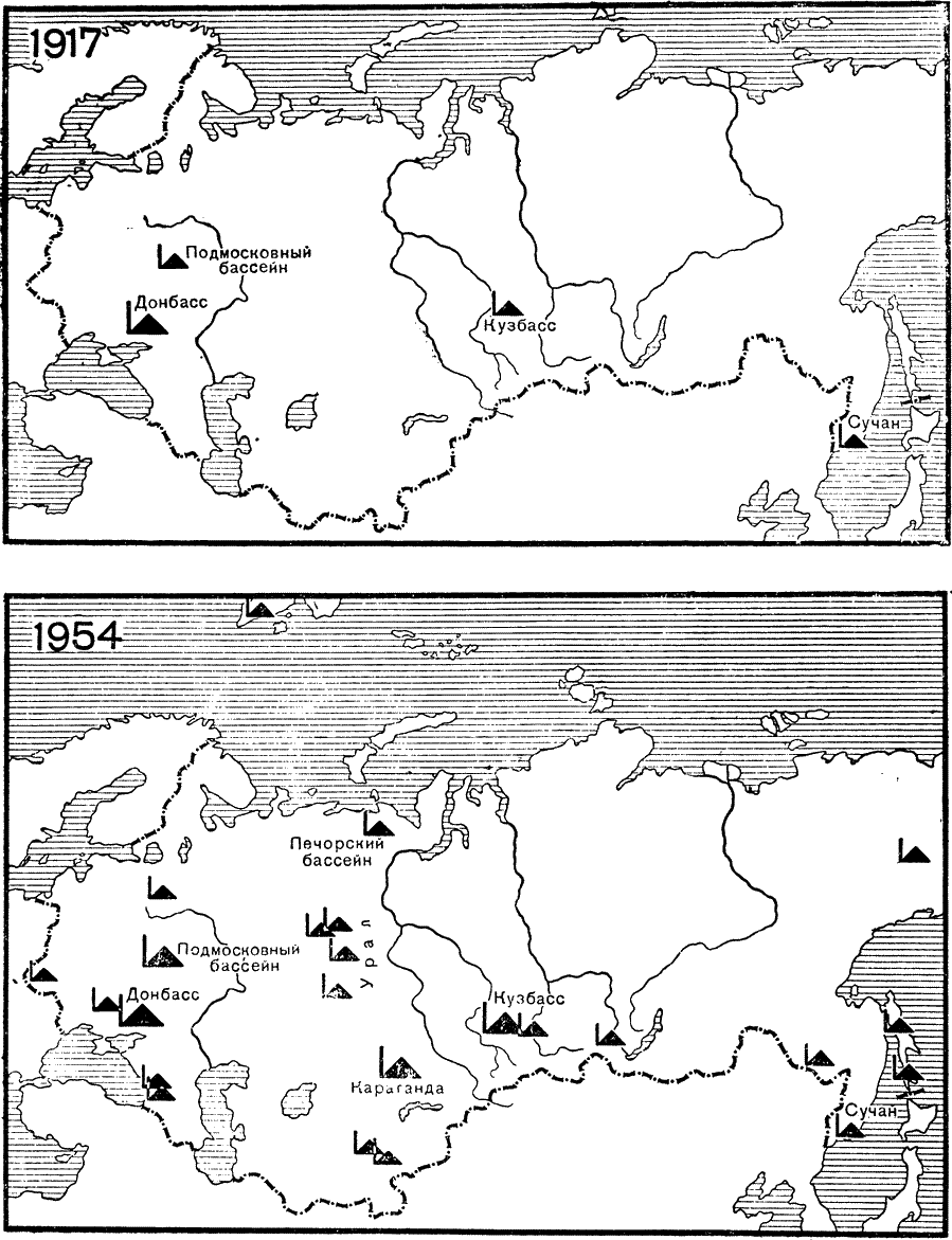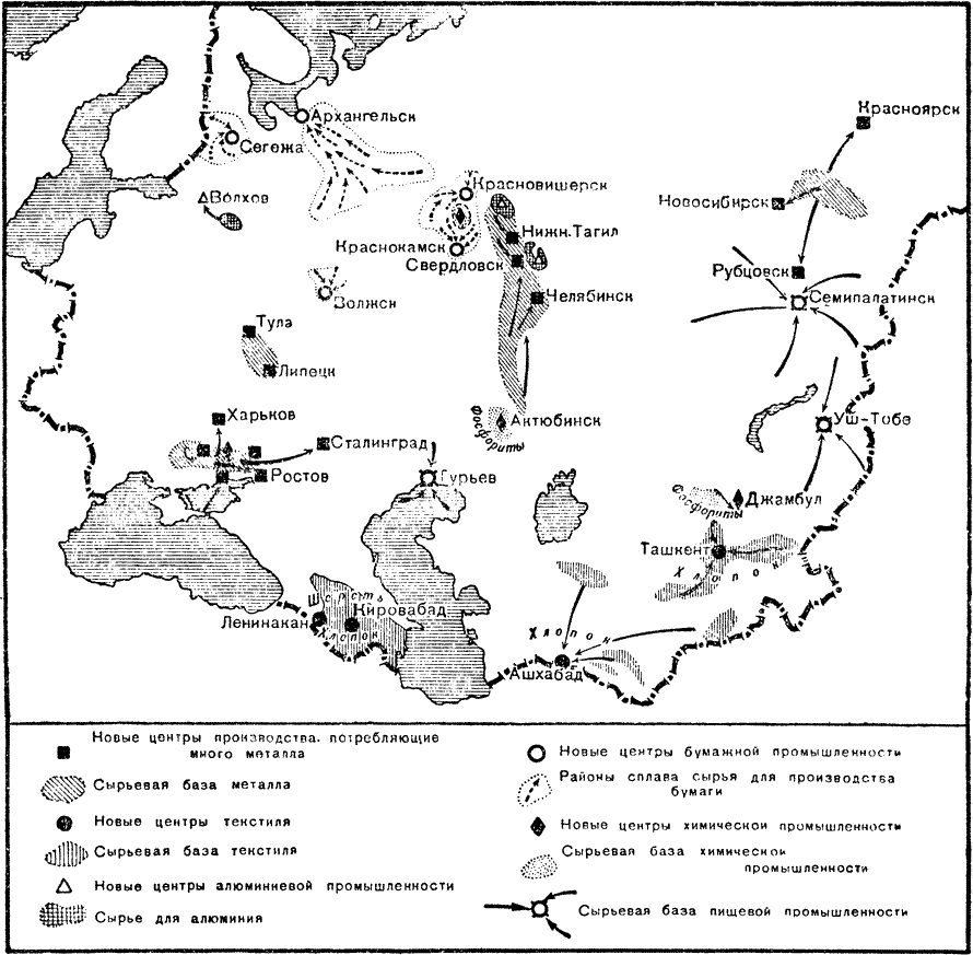 Экономическую карту Сибири приходится почти целиком чертить заново, — не было раньше на пей ни металлургии Сталинска в Кузбассе, ни машиностроения Новосибирска, Рубцовска, Красноярска и Улан-Удэ, ни лесопиления Игарки, ни производства тканей в Барнауле и Канске, ни фруктовых садов, ни Южно-Сибирской магистрали. Скоро будут взнузданы Обь и Ангара — и сибирская индустрия еще ярче засверкает на всю Советскую страну.