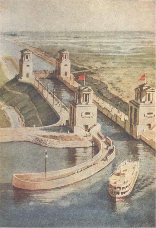 Мы можем представить себе карту будущих лет. Обновленная по генеральному плану Москва, леса в степи, осушенное Полесье, побежденные пустыни Средней Азии, полностью освоенные целинные земли Зауралья, величайшие в мире гидростанции на сибирских реках, новые искусственные «моря», первоклассные заводы у Байкала, электрифицированные магистрали поперек всей Северной Азии… На необозримых просторах наш народ, молодежь, что сейчас подрастает, создаст чудесный мир новых городов, могучей техники, невиданных богатств.