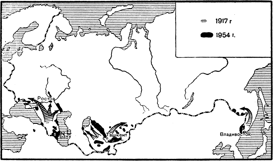Хозяйственную спаянность со всей страной Средняя Азия особенно остро ощутила во время гражданской войны. Временно оторванная, она с трудом могла существовать с избытком хлопка, шерсти и шелка, но без волжского хлеба и камского леса, без бакинской нефти, без промышленных изделий Москвы. С победой советской власти восстановилась связь Средней Азии со всей страной. Созданные здесь равноправные республики вошли в состав Советского Союза и с братской помощью русского народа развили свою свободную национальную культуру, механизировали земледелие, создали собственную индустрию, которая не только обрабатывает сельскохозяйственное сырье, но и дает сталь, машины, удобрения.