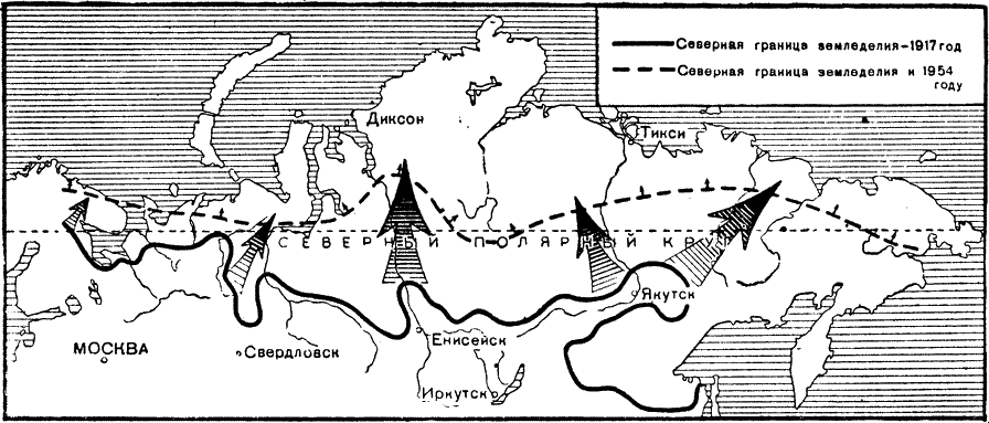 Наша карта свидетельствует: неправда, что ландшафт «неотвратим». Постигая законы природы и общества, мы с разумным расчетом переделываем старые ландшафты; на научной основе преображаем мы свою страну.