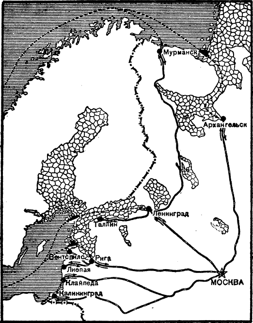 Не раз враги пытались стереть с мировой карты эту красную линию — границу Советской страны. Но всякий раз наш народ, сильный своей сплоченностью вокруг Коммунистической партии, своей любовью к Родине, разбивал и отбрасывал захватчиков. Он победил в тяжелых битвах и высоко поднял торжествующую славу первого социалистического государства на земле. Твердо нанесена на карту мира красная черта — от Печенги до Калининграда, от Калининграда до Измаила, от Измаила до Курильской гряды.