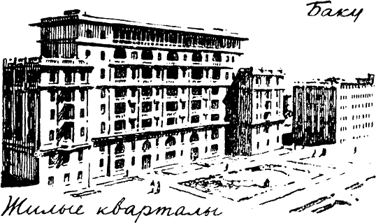 Старый, обновленный Баку. Лес нефтяных вышек так разросся, что перекинулся уже и на море. Город благоустроился, впервые появившейся зеленью воздух освежен и очищен от пыли.