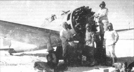 Техники устраняют неисправность на истребителе Ki-27