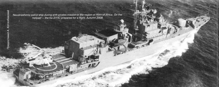 На 1 стор. обкладинки – морський гелікоптер Ка-27ПЛ (зав. N9 23335) із складу авіації Тихоокеанського флоту Росії злітає з палуби великого протичовнового корабля «Маршал Шапошников» під час дружнього візиту його на військово-морську базу США Апра (о. Гуам). 14 березня 2006 р.
