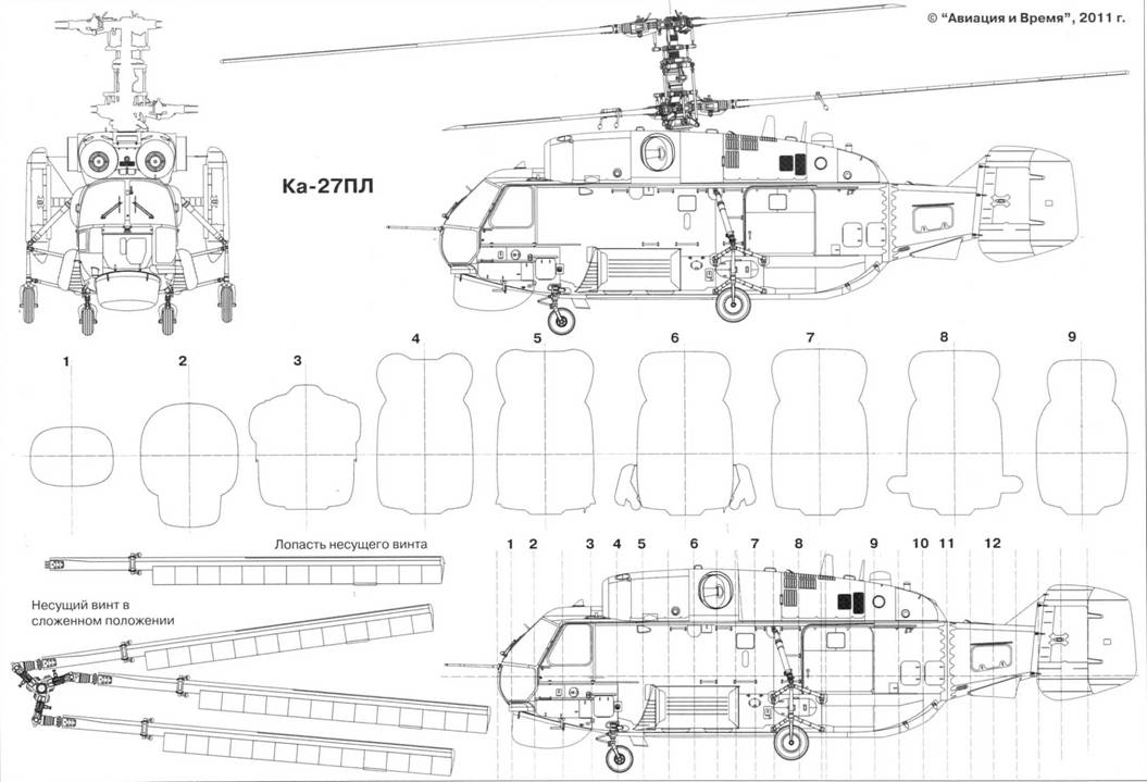 С учетом оговоренных габаритных ограничений добиться значительного повышения характеристик вертолета можно было только за счет увеличения его энерговооруженности и нагрузки на ометаемую площадь несущего винта, которая по расчетам достигла 50 кг/м'. Потребовалось существенно увеличить хорду лопастей и мощность силовой установки. Для успешного продвижения работ по Ка-252 исключительно важным стал выбор двигателей ТВЗ-117 мощностью 2200 л.с., разработанных Ленинградским ПО им. В.Д. Климова. Они уже прошли обкатку не только на армейских Ми-24, но и на морских Ми-14, и были доведены до высокой степени надежности.