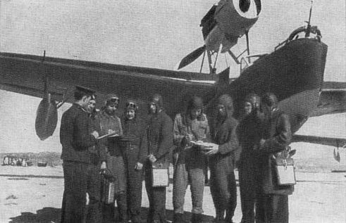 Помощник начальника штаба лейтенант Бабич ставит задачу экипажам самолетов на боевой вылет в Порт-Артур. Август 1945 г.