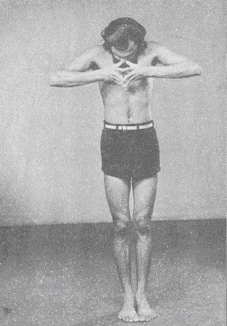 Это упражнение помогает стимулировать тазовый центр. Упражнение 39 возбуждает тазовое нервное сплетение. Упражнение же 40 приводит к возбуждению поджелудочного сплетения. Из обоих этих центров осуществляется иннервация нижней части желудочно-кишечного тракта, а также органов тазовой области и сфинктеров мочеполовой системы и заднего прохода. Хотя обычно деятельность этих сфинктеров непроизвольна и автоматична, постоянной тренировкой возможно установить контроль над ними и волевым усилием регулировать их деятельность. Целью этого, как и других вышеупомянутых упражнений, является координация функций соматической и автономной нервной системы.