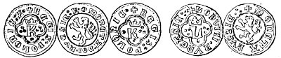 Монеты, чеканенные польскими королями Казимиром († 1370) и Людовиком († 1382) для Галиции.