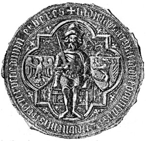 Печать польского князя Владислава опольского, последнего галицкого князя. Надпись по латыни: Владислав Божьей милостью Опольской, Велюнской и Русской земли наследственный владетель. Владислав правил с 1372 по 1378 г. — под верховной властью венгерского короля. Затем король польский Людовик († 1382) назначил венгерских наместников и ввел венгерское войско. С 1387 года Галиция перешла окончательно к Польше.