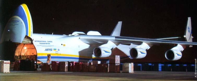 25 марта самолет Ан-225 «Мрiя» авиакомпании «Авиалинии Антонова» доставил в Японию гуманитарные грузы, передвижные лаборатории по замеру радиационного фона и генераторы общей массой 140 т. Рейс выполнялся по заказу правительства Франции. Самолет вылетел из французского аэропорта Шатору и приземлился в токийском аэропорту Нарита. На пути из Франции в Японию Ан-225 выполнил 3 технические посадки: в Минске (Беларусь), Алматы (Казахстан) и Шицзячжуане (КНР). Самолет пилотировал экипаж во главе со старшим командиром воздушного судна (КВС) В.В. Гончаровым и КВС-аудитором Е.А. Галуненко