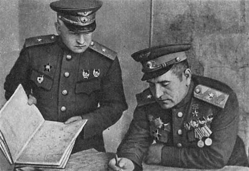 На всю жизнь запомнился тот день. Боевые полки взлетали при вынесенных на аэродромы знаменах, под звуки маршей, исполняемых духовыми оркестрами. Музыка сливалась с гулом моторов, и уверенней стучали сердца воздушных бойцов, которые улетали бить врага в его собственном логове. На задание тогда ушли все политработники полков, мой заместитель майор Б. С. Харабадзе, помощник по комсомольской работе капитан Д. В. Одноглазов. Я вел свой боевой корабль вместе со всеми.