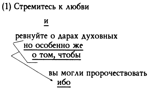 Поэтому я проделал то, что пришлось проделать и многим моим современникам, которых тоже учили «толкованию» как части «hermeneutics» или как «греческому повышенного уровня» — я стал учиться этому сам. Конечно, я получал много разного рода помощи и у меня было много учителей: известные комментарии, какие, например, дает Баррет (Barret) к 1 Коринфянам; мои коллеги, особенно Дейвид М. Шолер (David M. Scholer), ныне декан Северной баптистской семинарии, совместно с которым я преподавал курс «Толкование Нового Завета» и которому я обязан столь многими материалами, вошедшими в настоящую книгу. Но многому я научился, просто сидя над каким–то отрывком и прорабатывая все вопросы самостоятельно.
