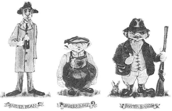 В одной долине стояли три фермы. Хозяева ферм весьма преуспели в своем деле и были людьми богатыми, но при этом мерзкими. Все трое были мерзкими и противными, как большинство людей, которых ты видишь вокруг себя. Звали их Боггис, Банс и Бин.