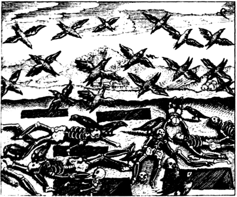 Госпожа (dame) Великого Делания, наша Госпожа (notre Dame), неотступно сопутствующая всем нашим мыслям, добавляет сладость своей правоты покою in pace, вечному покою, столь противостоящему иному — на противоположной стене — изображению, созданному великим живописцем, не менее странному, но при этом скорбному, пробуждающему мысль чрез страх, сожаление и грусть от вида человеческого распада: это скелет, облокотившийся левой рукой на собственный гроб; в левой руке восковая свеча; он закрывает её лишённой мяса правой ладонью, пронизываемой светом; если присмотреться, то вокруг — стеклянные глаза мёртвых детей, чьи взоры уже более не озаряют их скорбные и бледные лобики. Да, in ictu oculi; разрез глаз одинаков — таков, как есть, безжалостно занавешенный от благ мира сего, мёртвый разрез, высший знак верховной власти. Множество их расположено полукругом за этим странным подсвечником, столь ненадёжно озаряющим человеческое существование.