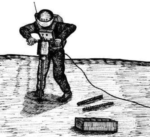 Когда по прошествии нескольких часов надо было его покинуть, то все, что космонавты должны были сделать, — это подпрыгнуть повыше, а затем включить ранцевое реактивное устройство. Начальная скорость для Фобоса составляла всего 5 м/сек, и для того, чтобы достичь ее, достаточно было подпрыгнуть. Любая вещь, подброшенная вверх, навсегда улетала с этой маленькой луны.
