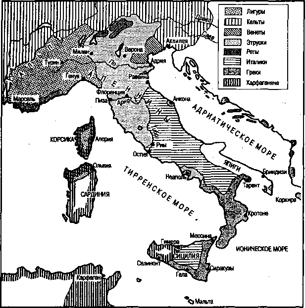 Таким образом, историк должен быть осторожным по двум причинам. С одной стороны, как подчеркивает Г. А. Мансуэлли, не следует связывать культурные инновации, возникающие в определенном регионе, или появление новых предметов исключительно с вторжением нового народа. Возможность заимствования существовала всегда, и этого может быть достаточно для объяснения зафиксированных изменений. Но верно и обратное. Преемственность материальной цивилизации не мешает предположить, если другие элементы подтверждают это, возможность вторжения, завоевания. Поэтому, как только один народ, покинув регион, в котором он обитал прежде, устанавливал путем завоевания контакт с другим народом, обладавшим уже развитой культурой, он спешил-заимствовать у него техники и способы производства. Примеры подобного процесса многочисленны. Так, кельты, которые оккупировали часть долины реки По в конце VI в. до н. э., заимствовали у покоренных этрусков некоторые формы их культуры, и большая часть предметов, обнаруженных в кельтских захоронениях близ Болоньи, являются этрусскими или же имитируют этрусскую продукцию. Г. А. Мансуэлли — это декларируется и ощущается в его исследовании — внезапным влияниям, обусловленным завоеванием, доверяет меньше, чем постепенным трансформациям, которые должны были распространить новый образ жизни. Я не стал бы заходить так далеко; история, и в не меньшей степени протоистория, изобилует миграциями и завоеваниями. Если в предании говорится о далеких во времени переселениях, например, этрусков, пришедших из Малой Азии в Италию, должны ли мы игнорировать это из-за недостатка абсолютного археологического подтверждения? Я так не думаю, поскольку, для того чтобы подтвердить рассказ древних авторов, достаточно аналогий в религиозных, лингвистических и ментальных структурах, которые связывают этрусков с Анатолийским побережьем. Впрочем, вполне допустимо, чтобы главное место в исследовании занимало влияние народЬв в их исторических рамках, например распространение влияния этрусков на территории Тосканы. Но это никоим образом не мешает рассматривать прибытие на берега Тирренского моря кораблей с переселенцами, пришедших из Эгеиды, которые принесли новый язык, восприятие жизни, мировоззрение и богов, которые погружают нас в атмосферу Древнего Востока.