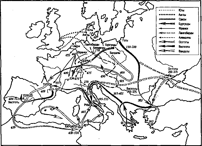 неклассических народов, среди которых одни, географически или по своей природе более близкие к очагам классической культуры, будут глубоко пропитаны ею, а другие, более удаленные, будут лишь слегка задеты ее влияниями, которые не смогут проникнуть глубоко. Вторжения варваров, которые разрушили Римскую империю, соответствуют всего лишь последним эпизодам передвижений и миграций, которые долгое время кипели за пределами укрепленных пунктов лимеса, пока по различным причинам эти пункты больше не смогли сдерживать натиск, ставший слишком сильным, и не уступили ему. Протоистория Европы, которая уходит глубоко в прошлое, обращена также к более поздним эпохам. Таким образом, тема расширяется во времени и пространстве, но книга, разделенная в соответствии с традиционной хронологией, тем не менее сохранила свою целостность в единой точке зрения — изучении отношений между классическими и периферийными цивилизациями.
