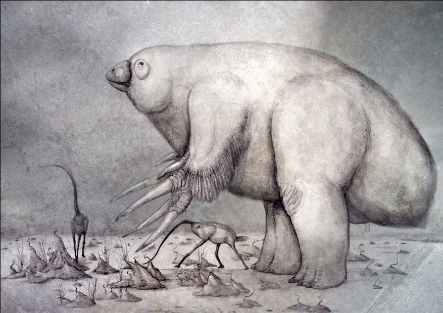 Немногие особенности выдавали их человеческую родословную. Они всё ещё сохраняли короткие большие пальцы на своих неуклюжих передних ногах, ныне бесполезных для любого вида точной манипуляции, кроме выдёргивания с корнем деревьев. Они компенсировали эту потерю путём развития своей нижней губы в мускулистый хоботообразный орган, что перекликалось со слонами из прошлого Земли.