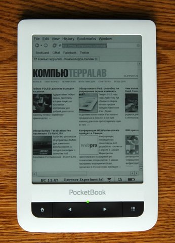 Всё остальное или просто неуместны в подобном устройстве (как часы, выводимые на весь экран или просмотрщик фото в чёрно-белом режиме), или неудобны в ридере на E Ink: для игр или веб-сёрфинга такой дисплей чрезмерно инерционен. Более того, попасть пальцем в некоторые меню браузера с первого раза мало кому удастся: они слишком мелкие и явно рассчитаны на экран больших размеров.