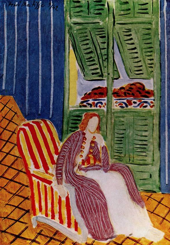 Южное побережье Франции с его ясным солнцем, прозрачным воздухом, яркими красками, богатой растительностью и лазурным морем давно привлекало Матисса. В 1938 году он переселился на юг, сначала в Ниццу, затем в Ванс. Однако вскоре началась вторая мировая война, и на долю художника выпало много горя. Во времена оккупации он не допускал даже мысли о том, чтобы покинуть родину. Его дочь, как участницу Сопротивления, нацисты угнали в лагерь смерти. Матисс не мог оставаться равнодушным к тому, что происходило у него перед глазами. И после войны он одним из первых присоединился к Стокгольмскому воззванию в защиту мира.