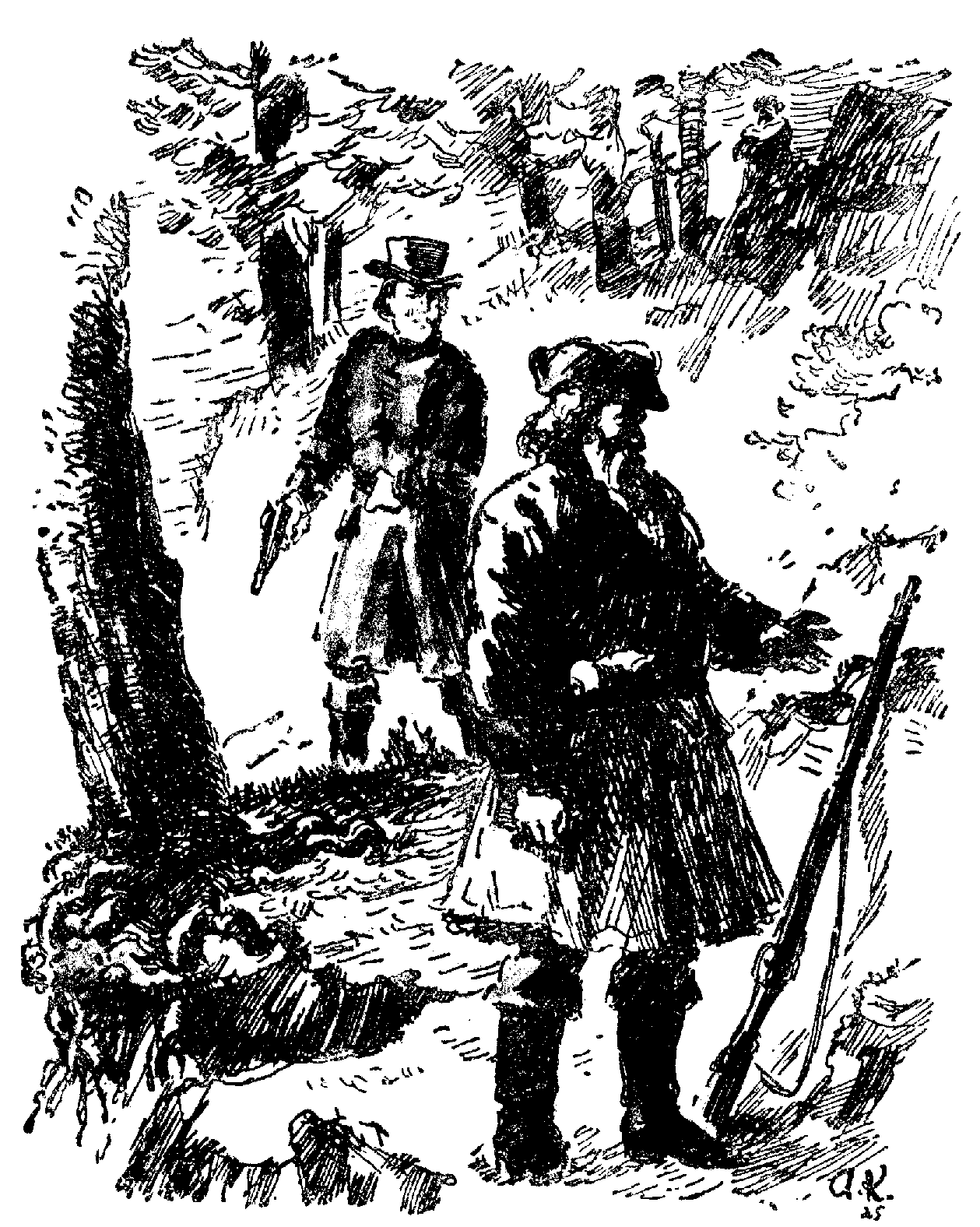 За Лещинским была снаряжена погоня. Отряд повел старый траппер Кулик. Суровый и прямодушный старик сказал Баранову.