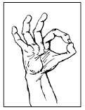 1. Безымянный палец и мизинец необходимо прижать друг к другу, указательный и средний слегка вытянуть вперёд.