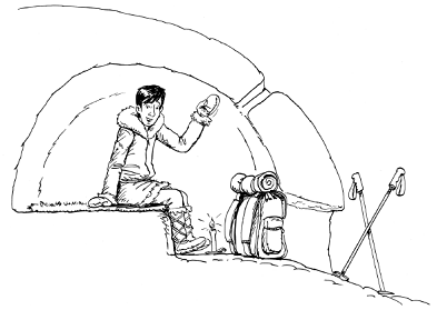 • Когда начинает темнеть и идти становится опасно, отыщи стабильный участок льда и поставь на нём палатку. Держись подальше от краёв. Прежде чем забраться в спальный мешок, выложи его пароизоляцией, которая похожа на большой пластиковый чехол. Она не позволит влаге твоего тела замерзнуть и наполнить спальник льдом.