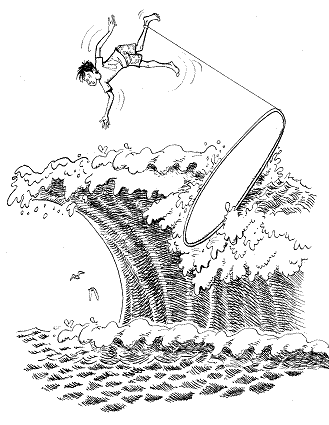 Внезапно раздаётся звук, который кажется тебе рёвом медведя гризли. От неожиданности ты спотыкаешься и падаешь в стремительный поток воды. Ты не успеваешь сообразить, что происходит, как уже на полной скорости мчишься к краю водопада. Ниагарский водопад – не самый высокий в мире, но вода в нем падает с целой серии огромных утесов, создавая брызги и образуя ледяные водовороты. Чтобы выжить в этом хаосе, необходимо прежде всего сохранять хладнокровие.