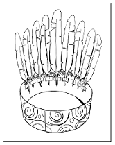 5. Когда клей высохнет, переверни полоску и укрась её перьями. Самое большое перо расположи в центре, а остальные – по обе стороны от него, создав впечатляющее украшение. Закрепи перья скотчем.