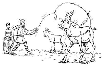 Когда вы добираетесь до побережья, олени разбредаются пастись. Ты можешь немного расслабиться, но иногда тебе приходится вскакивать с места, чтобы уберечь животное, вот-вот готовое свалиться с утеса или ушедшее слишком далеко от стада. Для этого саами, как и американские ковбои, используют лассо. Они бросают веревку, которая оборачивается вокруг рогов оленя. Верёвка имеет специальный узел Хонда. Нильс объясняет, как следует завязывать верёвку, чтобы использовать ее в качестве лассо.