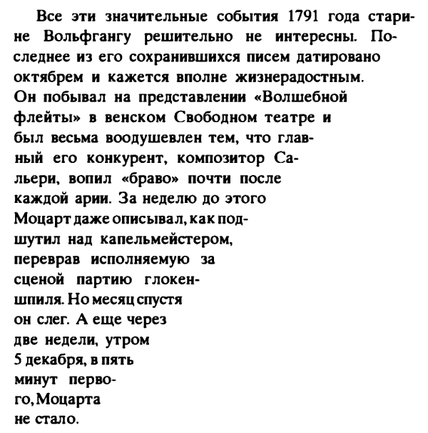 [*], «очень отрезвляющая мысль — ко времени, когда Моцарт дожил до моих лет, он уж два года как умер».