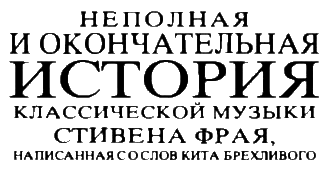 Книга эта предназначена для тех, кто любит слушать великую классическую музыку. Книга, о чем я не раз еще напомню вам на нашем пути, неполная. В ней не говорится о многом из того, о чем следовало сказать, чтобы заслужить титул «Полная и окончательная история классической музыки Стивена Фрая». В результате мы решили отказаться от этой кликухи и с присущим нам остроумием выдумали другую, которая, с одной стороны, намекает на первую и подразумевает ее, а с другой — решительно и напрочь ее отрицает. Блестяще. То был припадок гениальности, уверен, что вы со мной согласитесь. Книга наполнена также разного рода оценками — одни мои, другие не очень. Она переполнена сопоставлениями, полетами фантазии, приключениями музыкальной мысли и, по правде сказать, совершеннейшей чепухой. Собственно, там, где я имею нахальство прибегать к выдумкам, я позволяю себе вставлять значок ☺ (