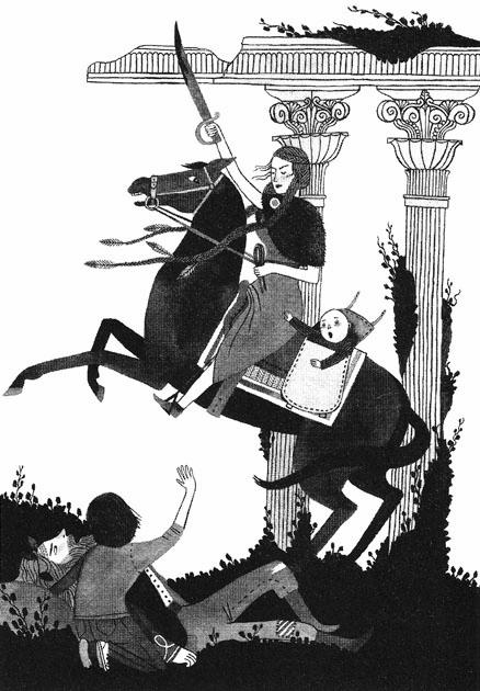 Какое-то время Прю ехала, лавируя в оживленном потоке, и вот добралась до ворот. Заметив ее приближение, стражи распахнули створки и, пока она неспешно проезжала под каменной аркой, стояли, салютуя. Впереди стелилась Длинная дорога, растворяясь в туманной дали. Девочка встала на педали и рванула вперед, чувствуя, как по щекам хлещет холодный ветер. Мак радостно агукал, сидя в своей тележке, и размахивал деревянной лошадкой над головой так энергично, будто она сама галопом скакала по дороге.