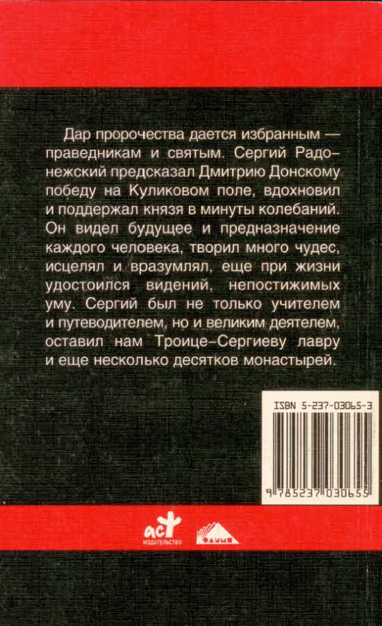 Россия многим обязана радонежскому чудотворцу. Каждый школьник знает, что Сергий предсказал Дмитрию Донскому победу над татарами на Куликовом поле, вдохновил и поддержал князя в минуты сомнений и колебаний. Эта победа стала переломной в истории страны. Не потому, что положила конец владычеству татар: еще целое столетие они хозяйничали на Руси и брали дань. Значение этой победы больше нравственное: русский народ после Куликова поля словно очнулся после вековой спячки, поверил в себя и стал себя уважать.