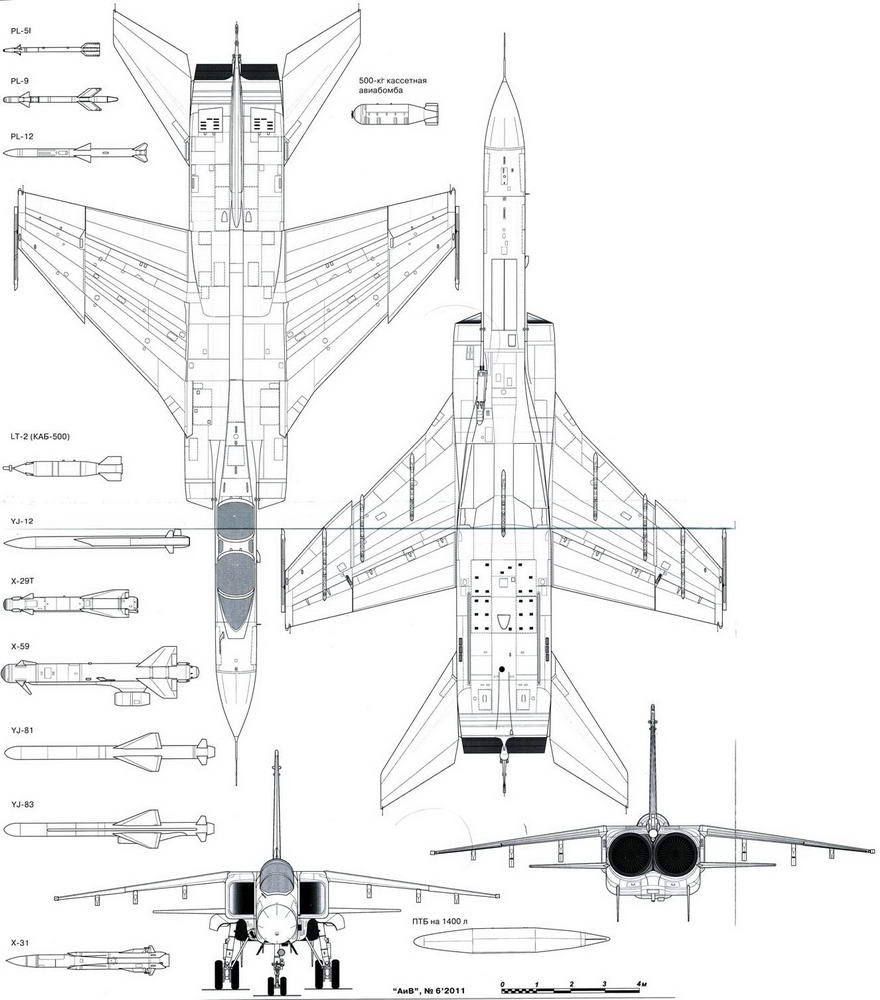 Однако вскоре стало очевидным, что требование ВВС и ВМС НОАК к новому самолету явно завышены. Действительно, ТЗ предусматривали оснащение Q-6, помимо сравнительно легкого лазерного дальномера (имеющегося и у МиГ-23БН), бортовой многофункциональной радиолокационной станцией, обеспечивавшей всепогодное применение авиационного комплекса по наземным, надводным и воздушным целям, а также полет в режиме следования рельефу местности. И все это первоначально предполагалось достичь путем совершенствования относительно простой и к началу 1980-х гг. уже устаревшей станции РП-22, устанавливаемой на истребителе МиГ-23С и работавшей там исключительно «по воздуху»! Позднее было принято весьма смелое решение: скопировать и «творчески переработать» для размещения на самолете Q-6 американский радиолокационный комплекс, снятый со сбитого во Вьетнаме самолета F-111А. (Напомним: этот комплекс включал обзорноприцельную РЛС Дженерал Электрик AN/APQ-113, а также две специальные РЛС следования рельефу местности Техас Инструменте AN/APQ-110).