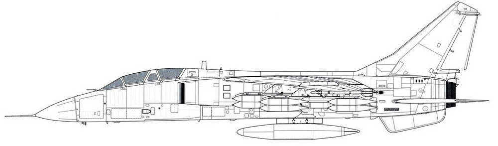 Ракетно-бомбовое вооружение может размещаться на шести узлах внешней подвески.