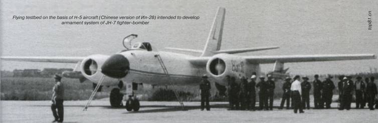 Летающая лаборатория на базе самолета Н-5 (китайский вариант Ил-28) для отработки системы вооружения истребителя-бомбардировщика JH-7