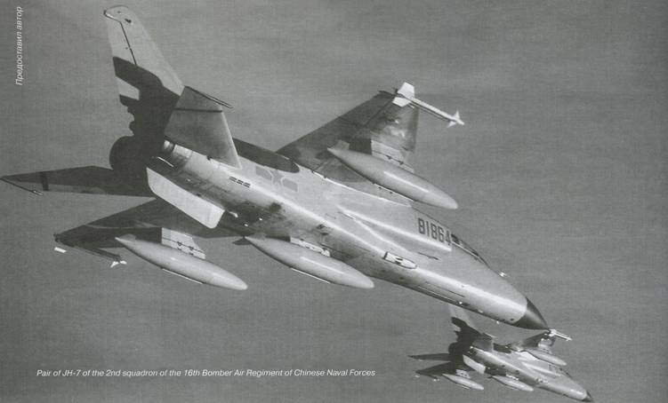 Поэтому, закупая в России самолеты типа Су-30 и предпринимая попытки воспроизвести их своими силами, Китай продолжал работы по совершенствованию JH-7. Таким образом, на рубеже веков сложилась ситуация, когда многофункциональные Су-30МКК шли на вооружение пользовавшихся большим приоритетом китайских ВВС, а истребителями- бомбардировщиками JH-7 перевооружали полки морской авиации, ранее оснащенные архаичными Н-5.
