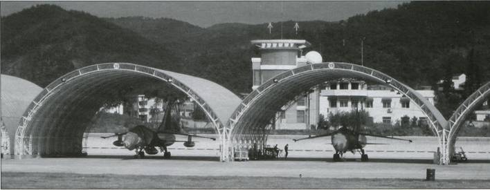 Истребители-бомбардировщики JH-7 в легких укрытиях