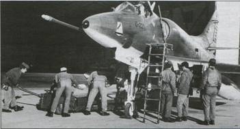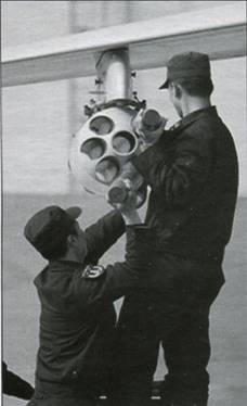 Корректируемая 500-кг авиабомба LT-2 и (внизу)свободнопадающие бомбы калибром 250 кг