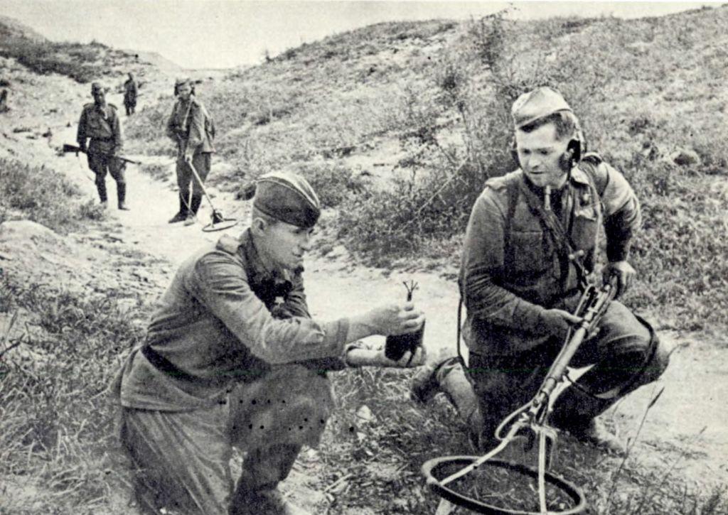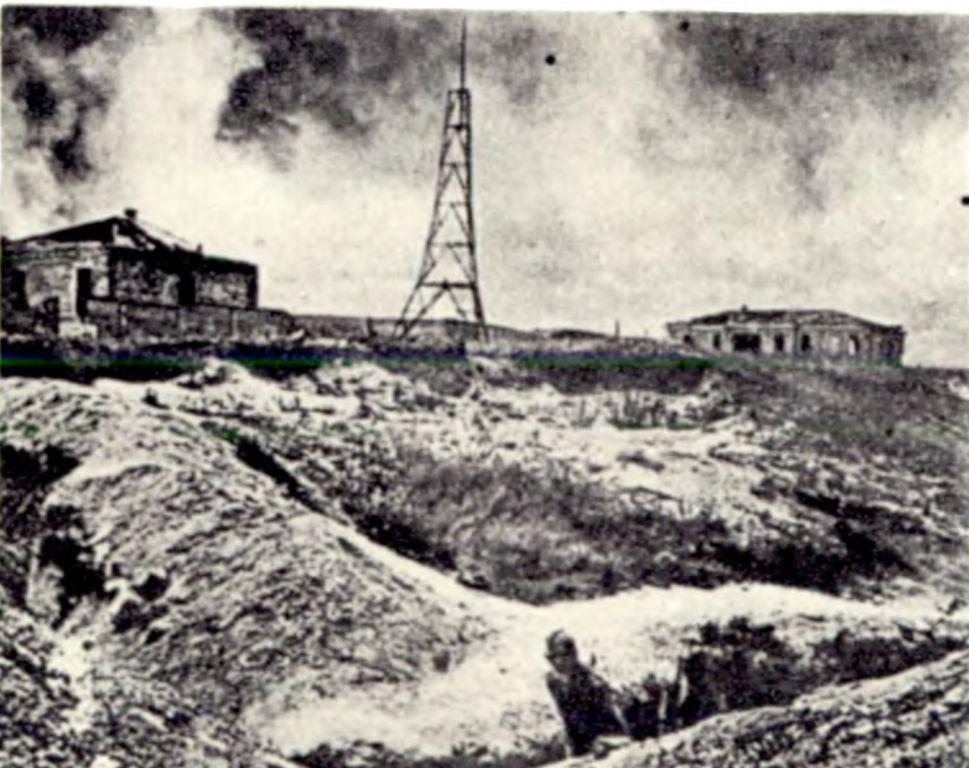 А было время, когда здесь с утра до ночи поднимались, застилая небо, столбы дыма, пыли и огня, грохотали орудия, взрывались многотонные бомбы, стрекотали автоматы. Тогда на месте клумбы был блиндаж, а там, где теперь училище, — полуразрушенное здание радиостанции.