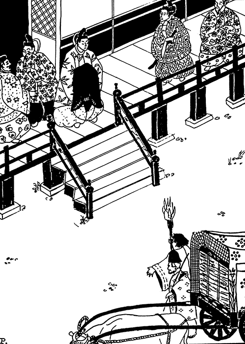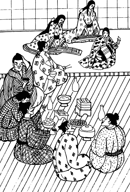 Отношения между полами в древней Японии поражали западных людей своим либерализмом, граничащим с безнравственностью. Тайный визит молодого человека в комнату юной дамы его сословия закреплялся на следующее утро обменом стихотворениями, однако при этом вовсе не обязывал любовников к продолжению отношений. Если они встречались три ночи подряд, брак считался состоявшимся, и семья невесты подносила жениху особым способом приготовленные рисовые лепешки, принимая его тем самым в свое лоно. Как правило, молодой муж отправлялся жить в дом семьи жены. Домашний статус новобрачной определялся статусом ее мужа, его желанием либо общественным положением ее родителей, поскольку мужчина мог иметь несколько жен и более свободные связи с наложницами. Мужчина также имел право развестись с женой, для чего ему было достаточно сообщить ей о своем решении. Однако семья девушки обычно хорошо заботилась о ее будущем, часто при помощи посредников устраивая смотрины после торга о предстоящем статусе ее в доме мужа и о принадлежащем ей имуществе. В отдельных случаях, в таких, например, как с торговцем Куратой, семья, не имевшая наследника мужского пола, могла взять мужа дочери в приемные сыновья.