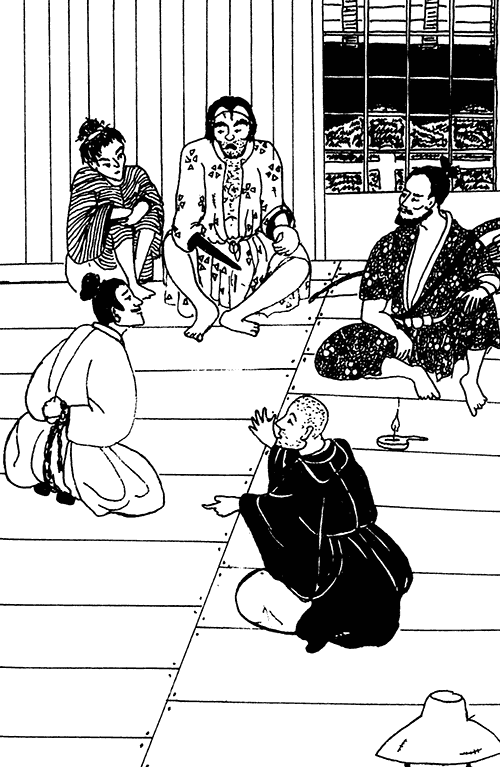 Монахи-ямабуси — бродячие монахи. В народе о них шла дурная слава, так как они часто занимались мошенничеством, распутством и даже грабежом на больших дорогах. Считалось, что им известны тайны чародейства.